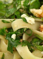 500 g de tagliatelles fraîches, 150 ml de crème liquide allégée, 125 g de ricotta, 400 g d'épinards frais (ou un peu mois si les épinards sont surgelés), de l'huile d'olive, 1 gousse d'ail, muscade, quelques feuilles de persil plat et du parmesan fraîchement râpé.