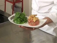 Réalisez un tartare de boeuf au basilic et crumble au parmesan Parmigiano Reggiano avec l'Atelier des Chefs, grâce à ce pas à pas vidéo.