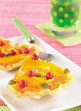 Préparation pour Tarte tatin à la pêche jaune, papaye et groseille