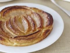 7- Garnir chaque fond de tarte avec les pommes émincées en réalisant une rosace serrée.