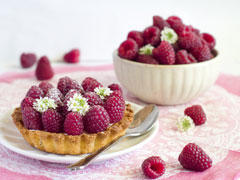 Avant de servir, récupérer les fonds de tarte. Les remplir de chantilly avec une poche à douille, et déposer sur chacune quelques petites framboises.