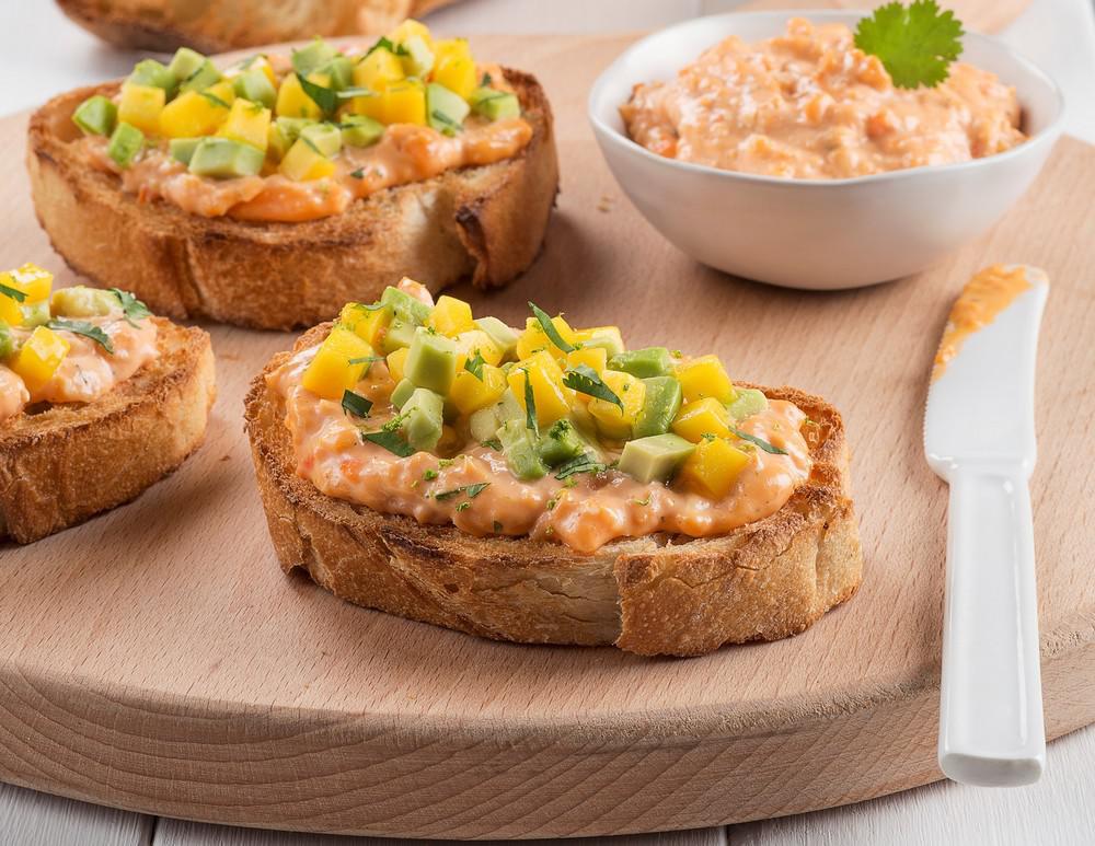 Ingrédients Tartines de saumon fumé, mangue et avocat
