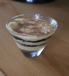 Tapissez vos petits pots de deux Oreo. Nappez-les de crème puis ajoutez deux autres biscuits imbibés et recouvrez à nouveau de crème.