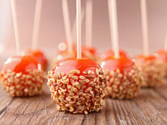Les tomates craquantes au sésame sont enrobées de caramel et recouverte de graines de sésame. Finalement ce sont des tomates d'amour.