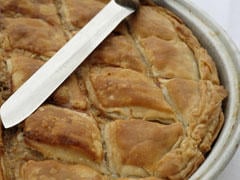 Faire une petite cheminée au centre avec du papier sulfurisé et décorer la pâte à l'aide d'une fourchette.