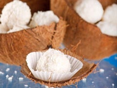 Sortez la préparation et prélevez de petite boules. Roulez-les entre vos paumes pour former les truffes. Roulez-les dans la noix de coco râpée à l'aide d'une fourchette. Déposez-les dans un plat ou sur une plaque.