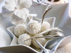 Roulez-les dans la noix de coco râpée à l'aide d'une fourchette et disposez-les sur un plat ou une plaque.