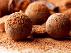 Etaler le cacao dans une assiette. Réaliser de petites boules de pâte de chocolat (avec les doigts) puis les rouler dans le cacao.