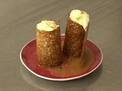 Tube caramélisé de fruits exotiques au curry déstructuré
