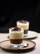 Disposer les préparations dans 4 verrines selon l'ordre suivant : pamplemousses, soupe de chocolat et crème d'amande. Reserver.