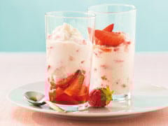 5. Répartir les fraises macérées dans 4 verres et recouvrir de faisselle aux fraises.